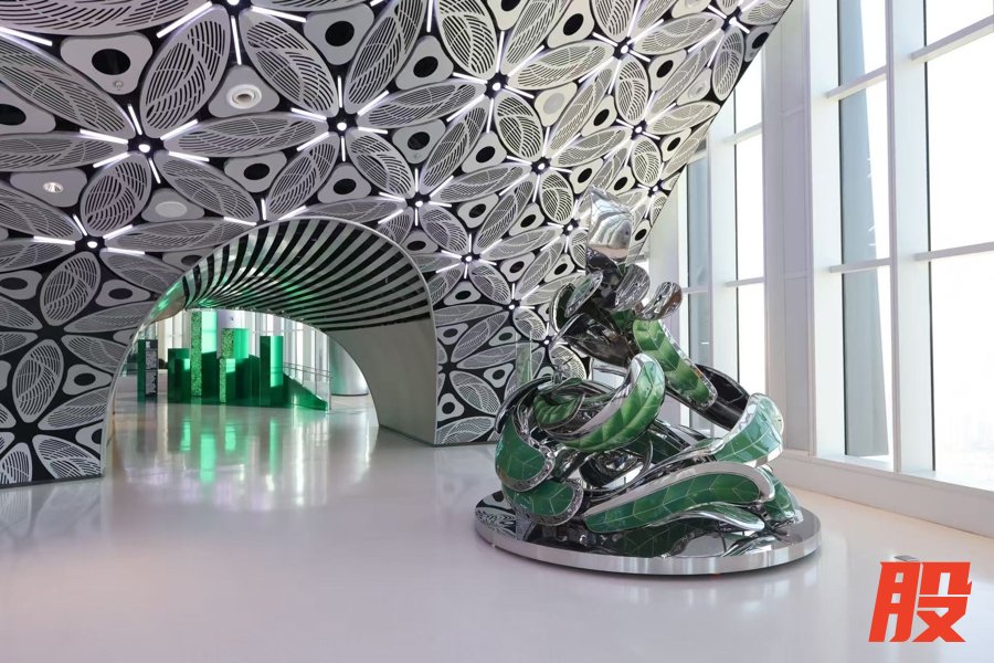 据悉,该作品由中国工艺美术大师蒋国兴创作,以“二十四番花信风”为灵感,融入上海市花白玉兰与中华蜜蜂的意象,既暗藏地域文化底蕴,深化游览的精神体验及情感联结,又传递人与自然和谐共生的生态主张,为空间注入温润的人文气息。作品采用不锈钢与陶瓷双材质打造,以刚柔相济的质感融入环境,螺旋上升造型搭配釉色渐变设计,既呼应了高空光影流转的视觉体验,又暗合了清洁能源转型的生态理念,细节处的工艺巧思更为观光厅增添了可品味的艺术质感,实现了空间美学与核心主张的深度融合。